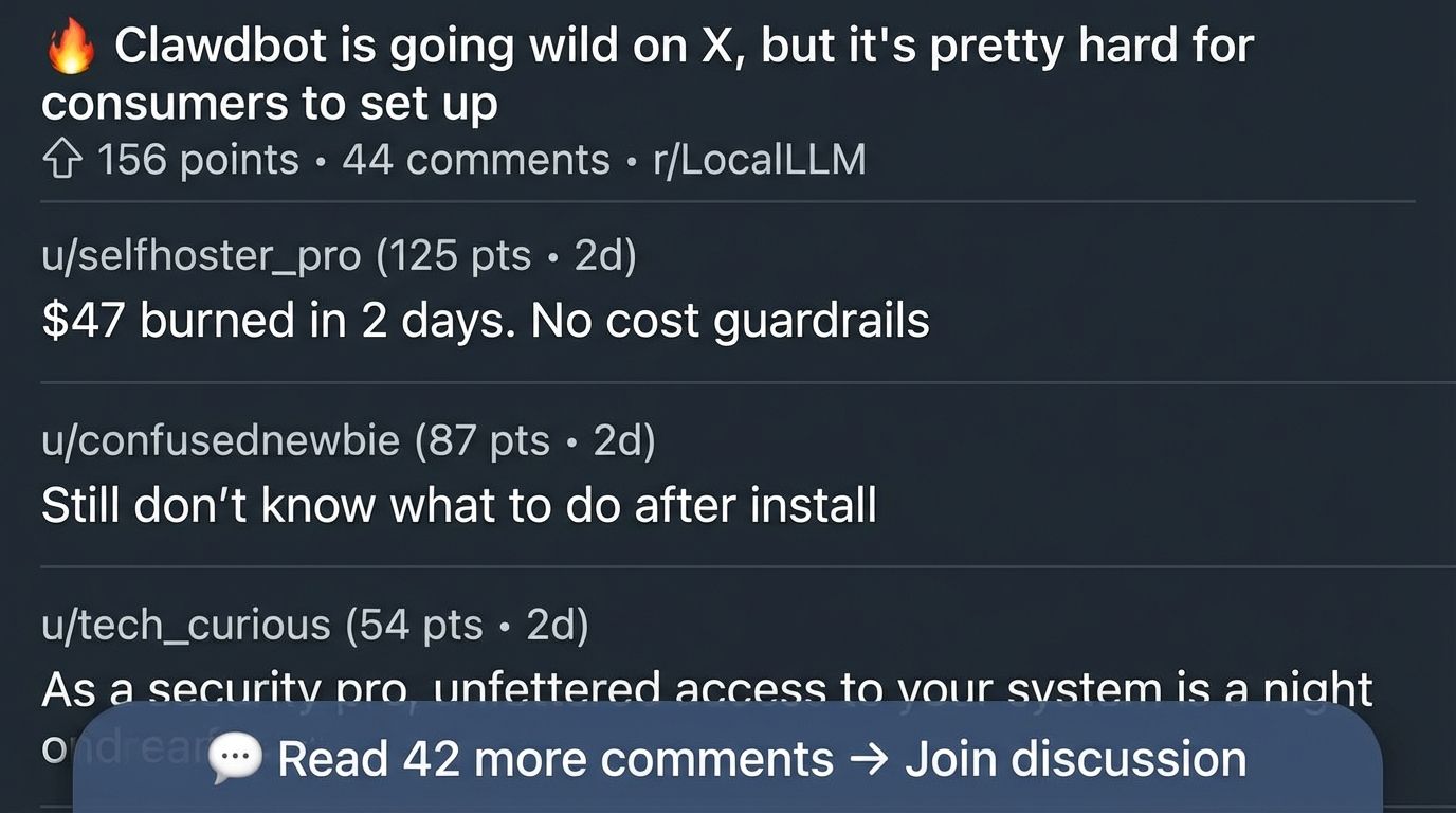 Clawdbot is different — not because it's ready, but because it shows where things are going. AI that acts. AI that doesn't wait. AI that runs while you sleep.